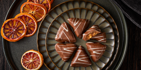 Triunghiuri cu portocale roșii și migdale