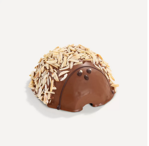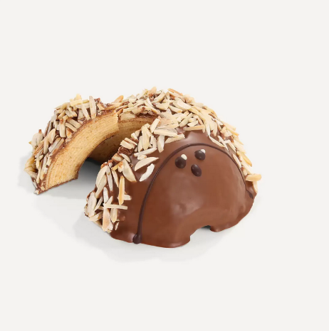 Ariciul Baumkuchen este copt strat cu strat, conform metodelor tradiționale, de aceea este o adevărată delicatesă. Baumkuchen-ul este considerat apogeul cofetăriilor, fiecare piesă fiind o capodoperă. Aluatul este aplicat în straturi individuale, unul după altul, pe un tambur care se rotește lent și este copt cu grijă, la foc deschis. Aceasta este singura modalitate de a crea inelele caracteristice, care amintesc de inelele anuale ale unui trunchi de copac, care dau și numele acestei prăjituri rafinate. Straturile fine sunt clar vizibile în Baumkuchen-ul arici, deși sunt subtil ascunse sub un strat subțire de ciocolată begiană fină, care acoperă complet prăjitura. Cu aroma sa blândă și cremoasă de cacao, ciocolata se armonizează perfect cu dulcele delicat al Baumkuchen-ului și îl menține incredibil de moale și umed. Decorat manual cu felii de migdale presărate, ariciul Baumkuchen este întotdeauna cadoul perfect, indiferent de ocazie sau anotimp, pentru cei care apreciază cele mai fine produse de patiserie.