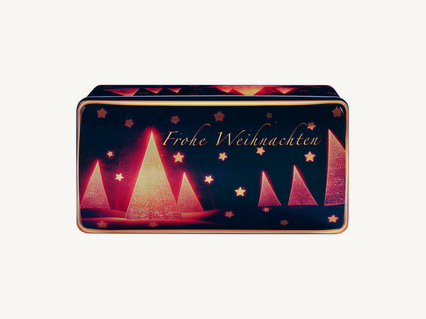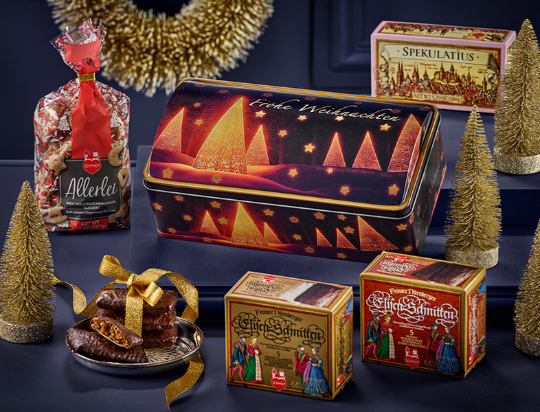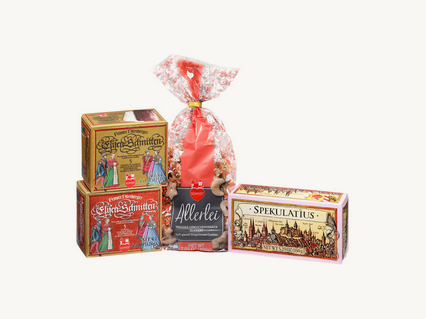 Și delicios – ei bine, asta se explică de la sine: În interiorul Cufărului de Crăciun se află patru specialități delicioase de Crăciun pe care le-am ales pentru iubitorii de dulciuri de sărbători: Felii fine Elisen (glazurate și cu ciocolată), Spekulatius puţin  picant, turtă dulce glazurată cu zahăr și felii fine Elisen învelite cu ciocolată.