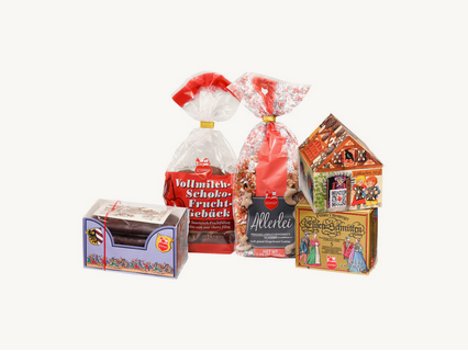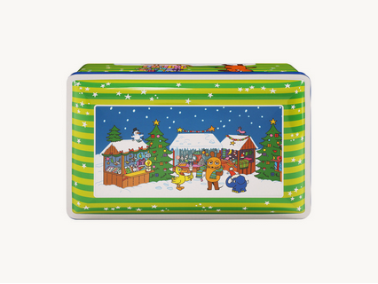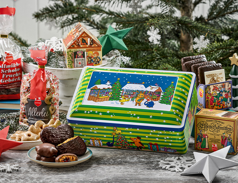 În interiorul cufărului se află tot felul de comori de Crăciun din Nürnberg: felii fine de Elisen (acoperite cu ciocolată și glazurate cu zahăr), căsuţa din poveşti cu inimi de turtă dulce, fursecuri cu fructe și ciocolată cu lapte sau „De toate glazurate ”cu zahăr: toate specialități de Crăciun pe care copiii le apreciază în mod deosebit.