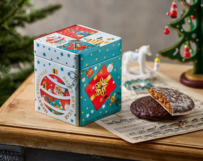Există ceva mai bun în timpul sezonului de Crăciun decât să te bucuri de turtă dulce în timp ce asculți sunetele cântecului „We Wish You a Merry Christmas”? Cutia noastră muzicală veselă și colorată cântă popularul colind de Crăciun și conține patru felii de turtă dulce, învelită în ciocolată și glazurată.