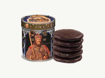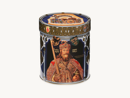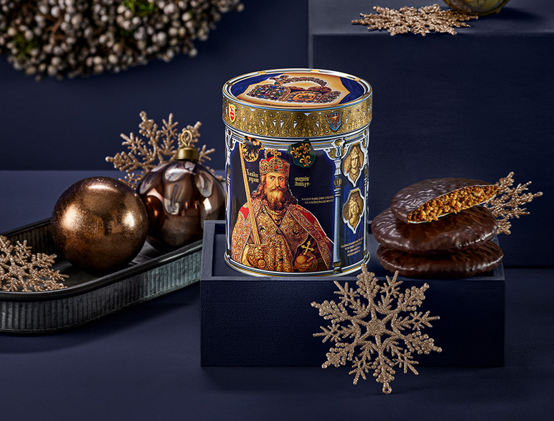 Bucură-te ca un împărat de turta noastră dulce Elisen, care este cea mai bună, dintre cele mai bune, deoarece este fără făină în aluat şi are multe  seminţe oleaginoase (alune, migdale, nuci) de înaltă calitate. Aceasta reţetă extraordinară garantează un gust delicios! Desigur, aceste delicatese sunt coapte pe o napolitană proaspătă și acoperite cu cea mai bună ciocolată! Specialitatea premium de Crăciun de la Lebkuchen-Schmidt, merită și un ambalaj excepţional. De aceea am ales o cutie metalică de calitate superioară, care este decorată cu motive imperiale: împaraţii vremurilor trecute te invită să descoperi vestimentaţie şi accesorii extraordinare. Chiar și după ce turta dulce Elisen a fost mâncată, frumoasa cutie poate fi folosită în multe feluri, fie pentru prăjituri coapte acasă, fie pentru mici decoraţiuni de Crăciun, care au nevoie de un loc unde să le depoziteze. Dăruiește cutia imperială prietenilor și rudelor, garantăm că vor fi la fel de fericiţi ca un împărat!