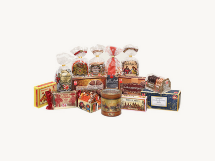 Am împachetat o gamă largă de specialități de turtă dulce din Nürenberg, de la turta dulce originală din Nürenberg cu nuci Elisen, delicioase steluțe din turtă dulce și biscuiți crocanți speculatius, până la
