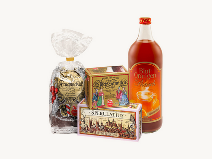 Un cadou de Crăciun minunat pentru tineri și bătrâni, deja ambalat și umplut cu delicatese de la Lebkuchen-Schmidt: Acesta este pachetul de punch fără alcool din selecția noastră de cadouri!
