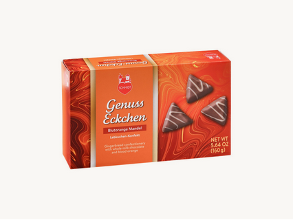 Când muști dintr-una dintre aceste delicii și aroma Crăciunului se amestecă în mod surprinzător cu note de citrice estivale, știi că ai mușcat dintr-un Triunghi cu portocale roșii și migdale. Bazându-ne pe turta noastră dulce a anului 2023, am creat triunghiuri mici și umede de turtă dulce rafinate cu aroma fructată a portocalelor roșii, un strat delicat de ciocolată cu lapte și o decorațiune cu fâșii de ciocolată albă. Este puţin ca și cum ai sărbători Crăciunul în Italia – poate o idee pentru următoarea ta reuniune festivă?